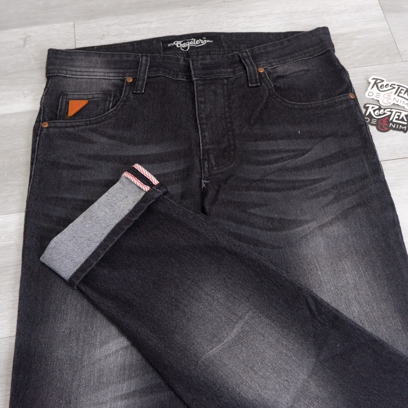 Celana Pria Denim Selvedge Slimfit Warna Hitam RoosterDenim