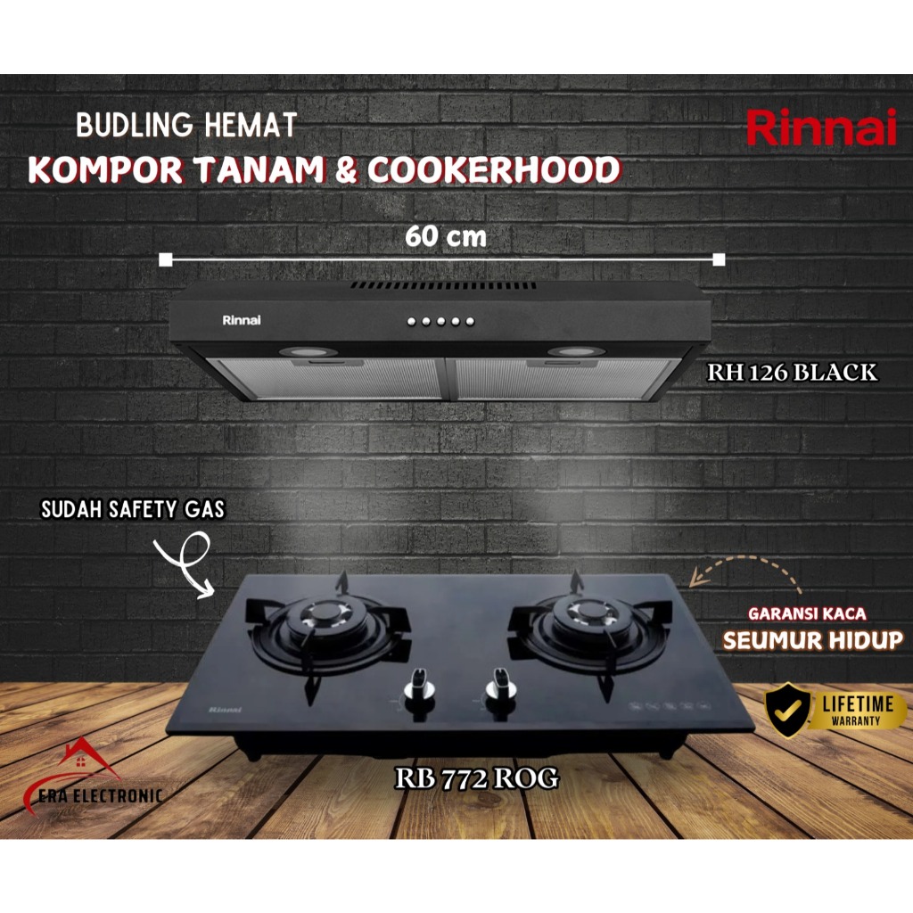 PAKET Hemat kompor rinnai RB 772ROG / RB772ROG /hood RH 126B / RH 126 B Khusus Luar Kota
