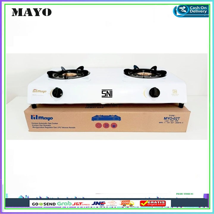KOMPOR 2 TUNGKU lilmayo SNI -Teflon Warna PUTIH SNI Terbaru / Kompor Dengan Selang Regulator Paket Mantap