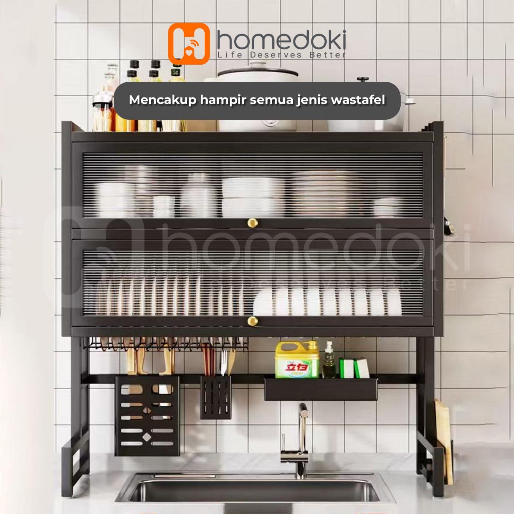 Homedoki Rak Piring Wastafel Dapur Stainless Steel Multi-fungsi Dengan Penutup Rak Piring Tertutup