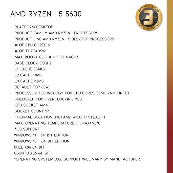 AMD RYZEN 5 5600 | Processor AMD AM4 Zen 3 Vermeer 6 Cores 12 Threads - Box