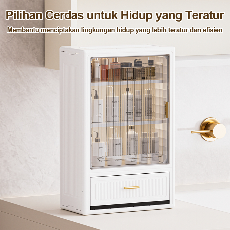 Lemari Penyimpanan Dinding Multifungsi | Tahan Debu | Rak Pintu Tunggal | Lemari Penyimpanan Kosmetik | Dengan Laci-Tida