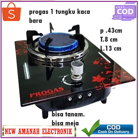 Kompor Gas Progas 1 Tungku Kaca Gas 2in1 Tempered Glass /BARA & GAS BIASA Bergaransi
