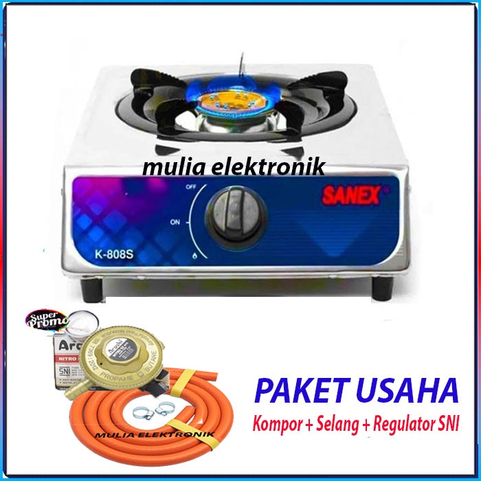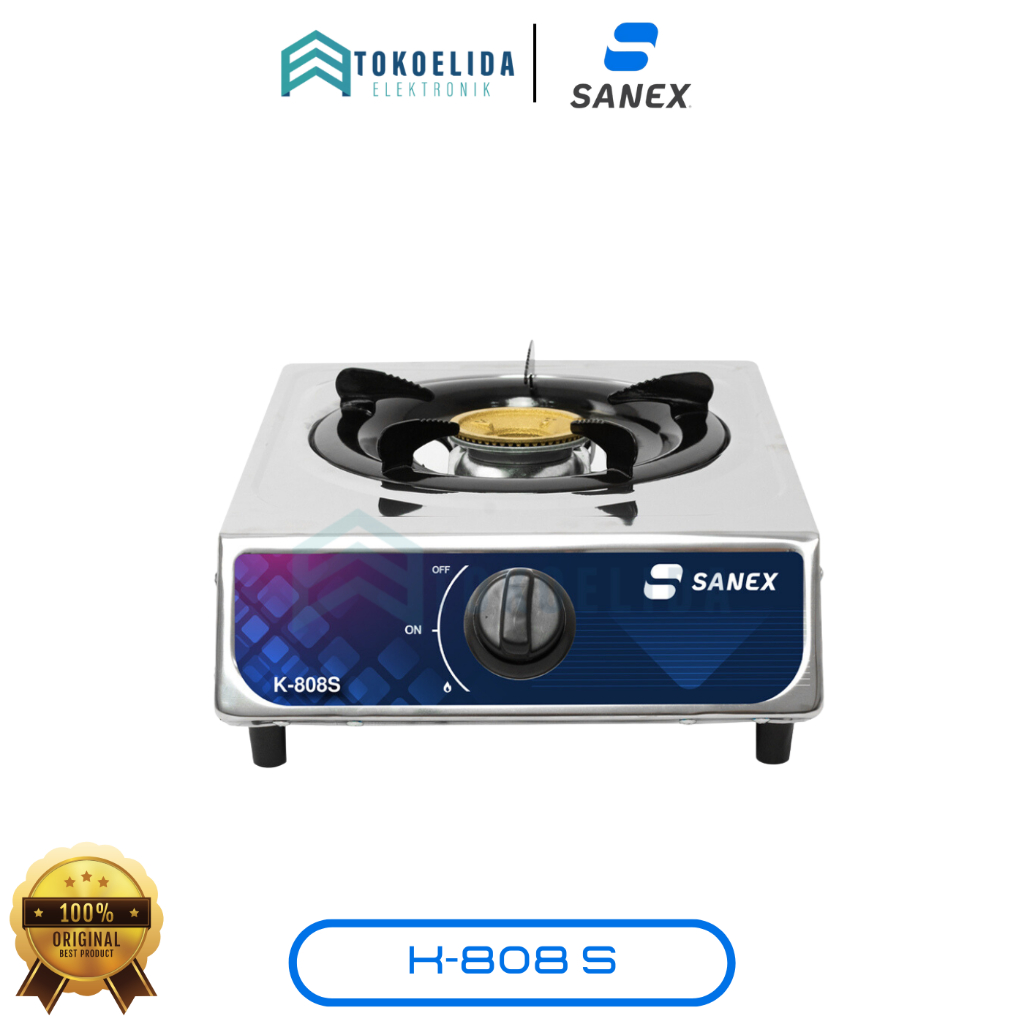 KOMPOR GAS 1 TUNGKU SANEX K-808S STAINLESS STEEL FREE SELANG REGULATOR SNI