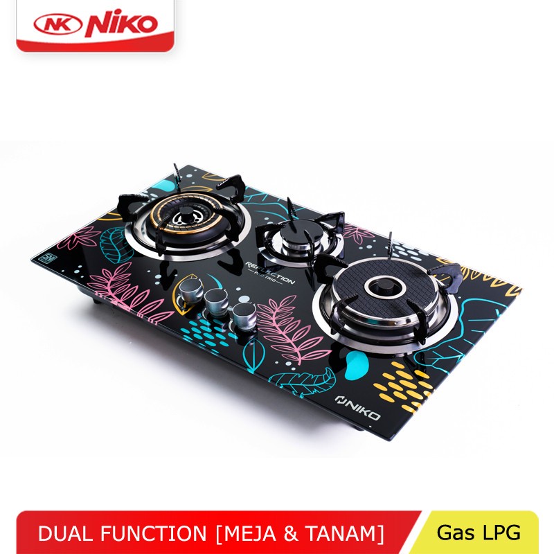 NIKO REFLECTION PRO TRIO KOMPOR GAS TANAM KACA 3 TUNGKU TEMPERED GLASS - BISA TANAM & MEJA