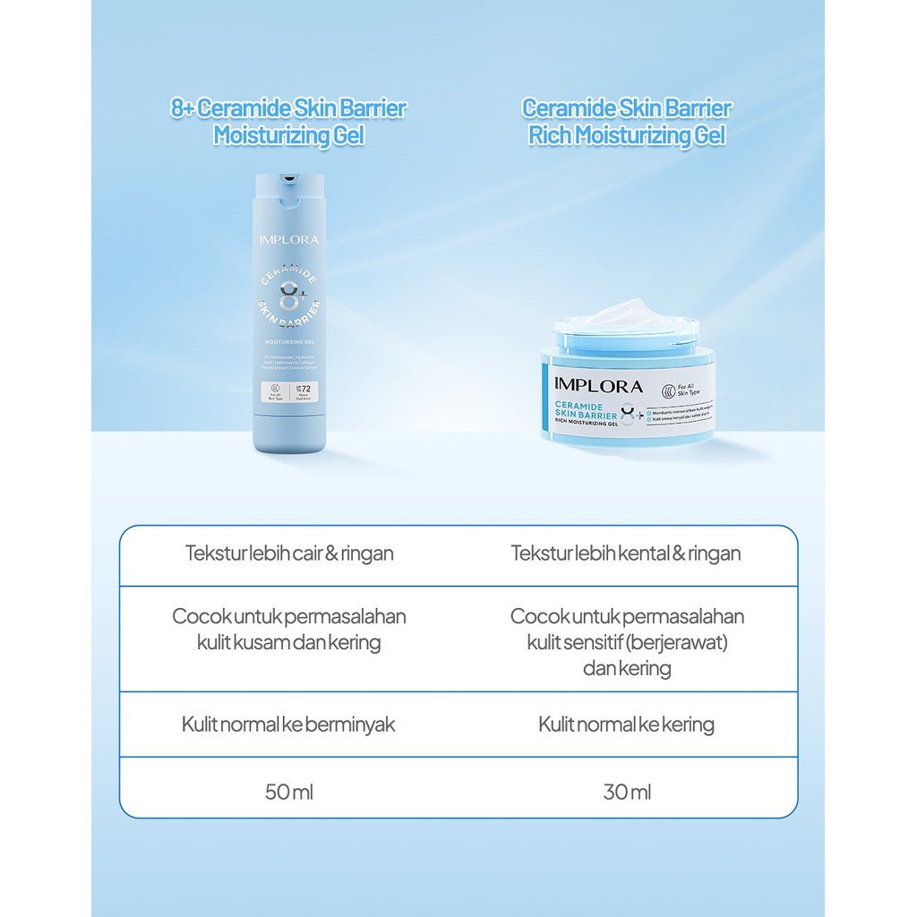 Implora 8+ Ceramide Skin Barrier Rich Moisturizer Gel 30ml | Kulit Ekstra Lembap