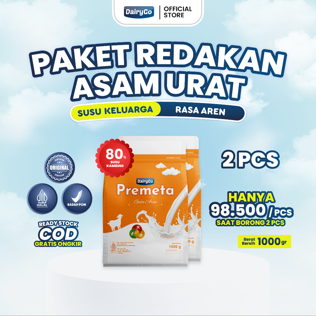 Susu Kambing Etawa Bubuk Aren 1kg Alami Bantu Atasi Asam Urat Kesemutan dan Kebas Paket 2 pcs