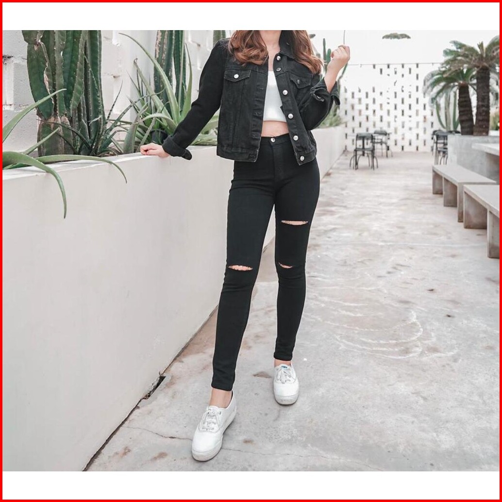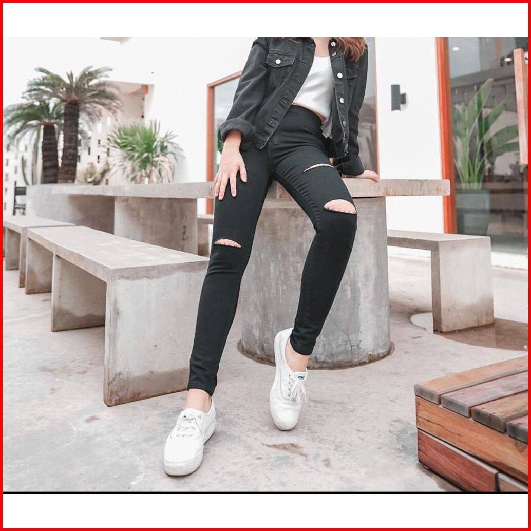 Hw Hitam Jsk 1910 Ripped 3 Timber Celana Highwaist Hitam Pekat Ripped Jeans Sobek Lutut Bigsize