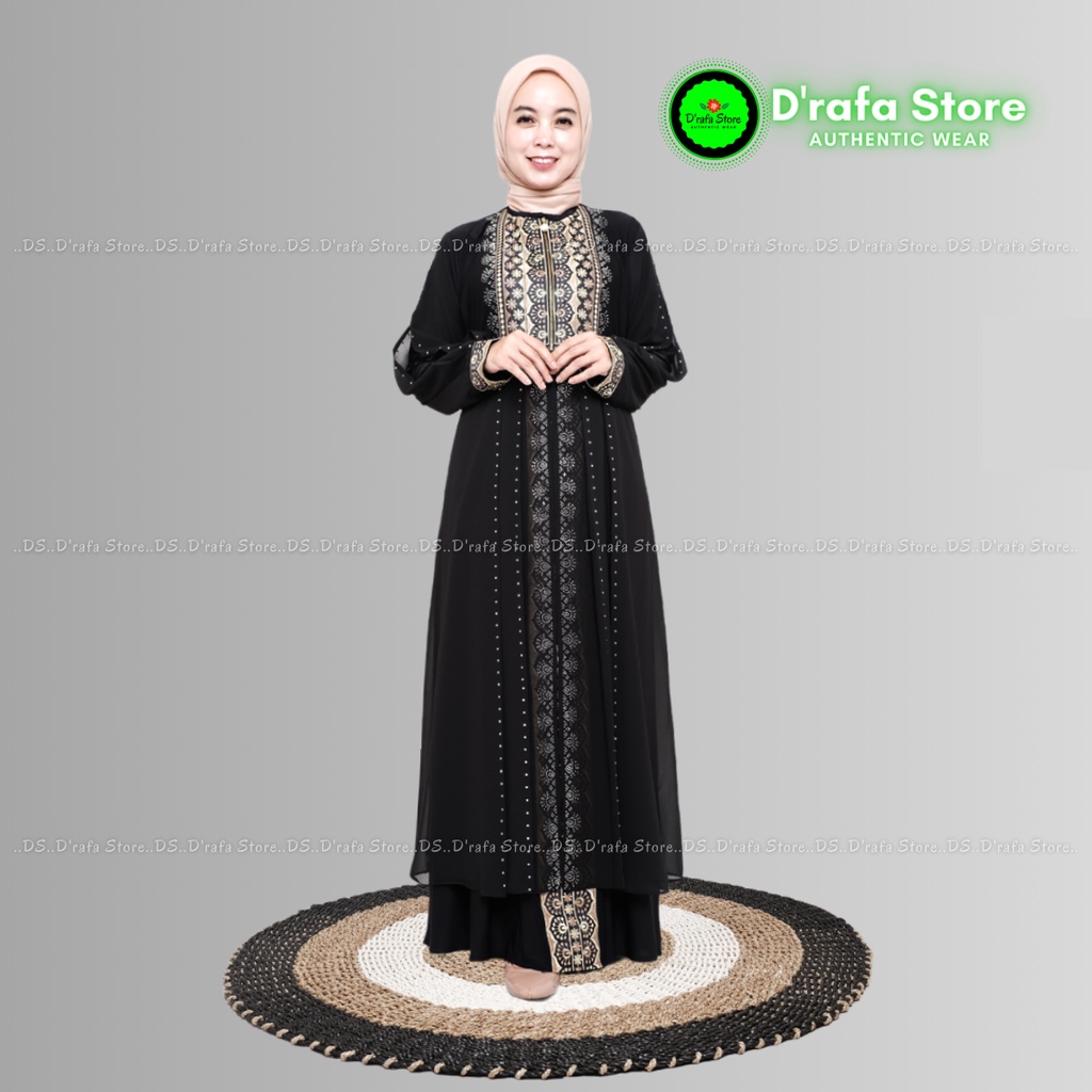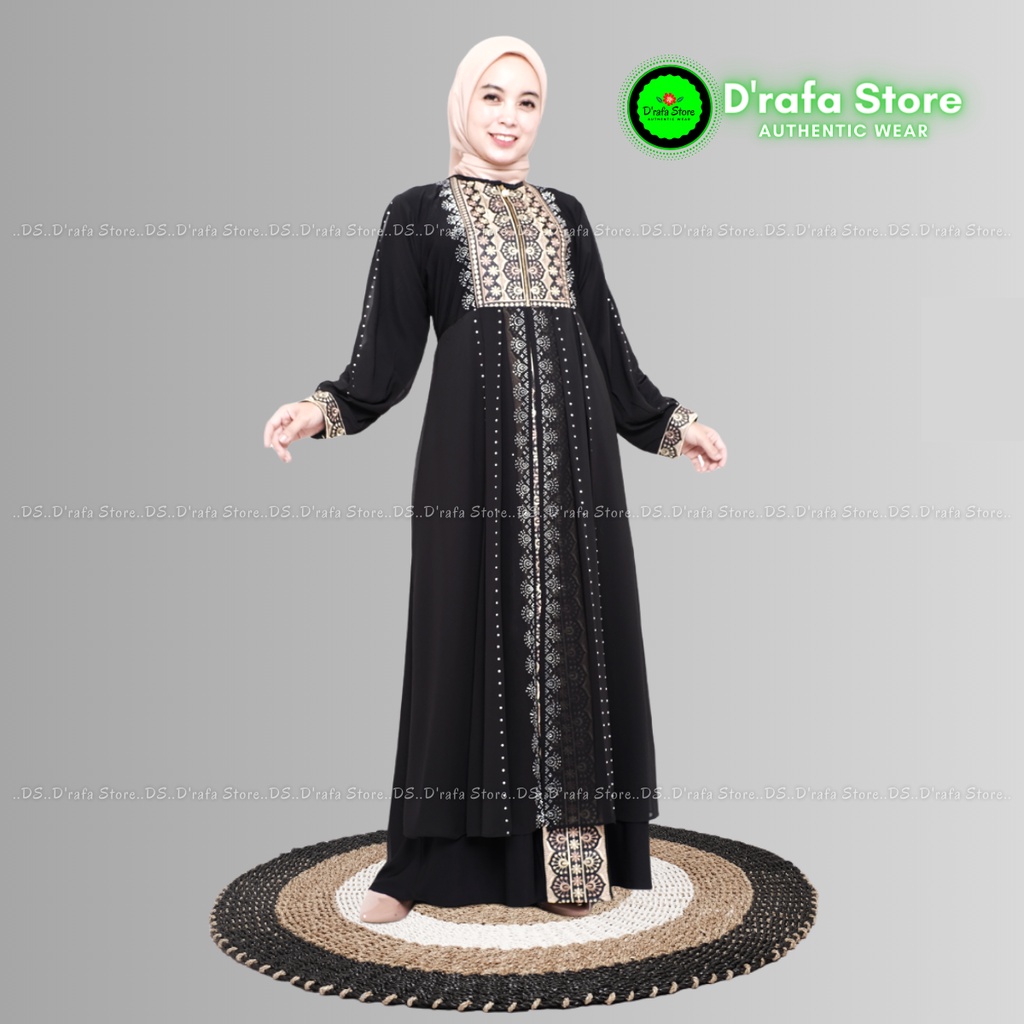 Gamis Abaya Turkey Hitam Wanita Terbaru KC-387 Jersey Mix Ceruti Dengan Bordir Payet Elegan
