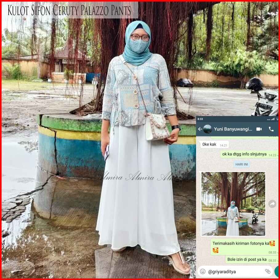 Celana Kulot Panjang Payung Lebar Wanita Muslimah Polos Palazzo Sifon Chiffon Ceruty Pants Almira