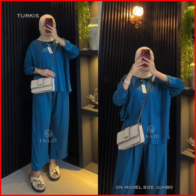 Lka One Set Polos Oversize Rayon Twill Premiun Setelan Kemeja Kulot Wanita Kekinian