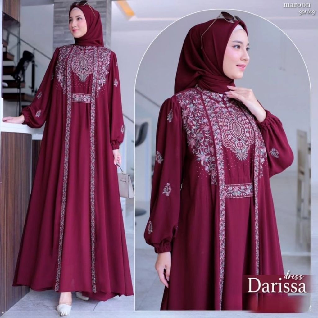 Darissa Dress Cantik Mewah Ceruty Babydoll Mix Bordir Gamis Kondangan 2026 Elegant Ukuran M,L,XL DAN XXL