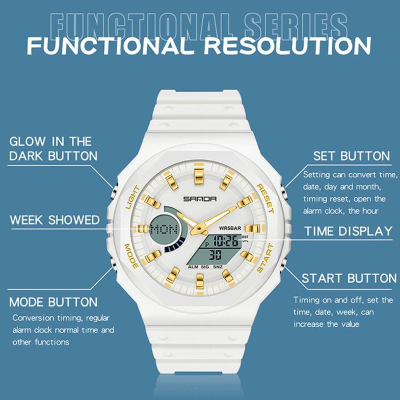 SANDA 6016 Jam Tangan Pria Wanita Digital Sport EL Backlight Tali Rubber Anti Air CURRENOS