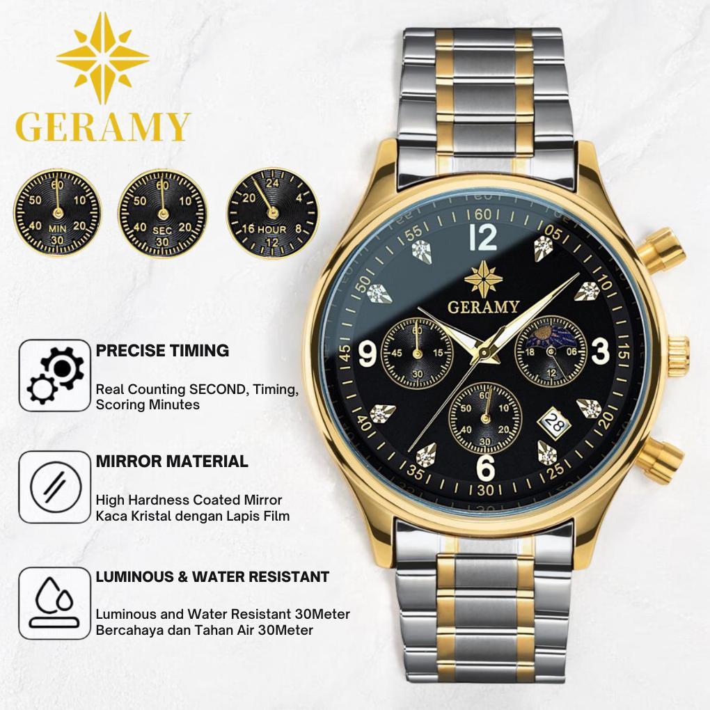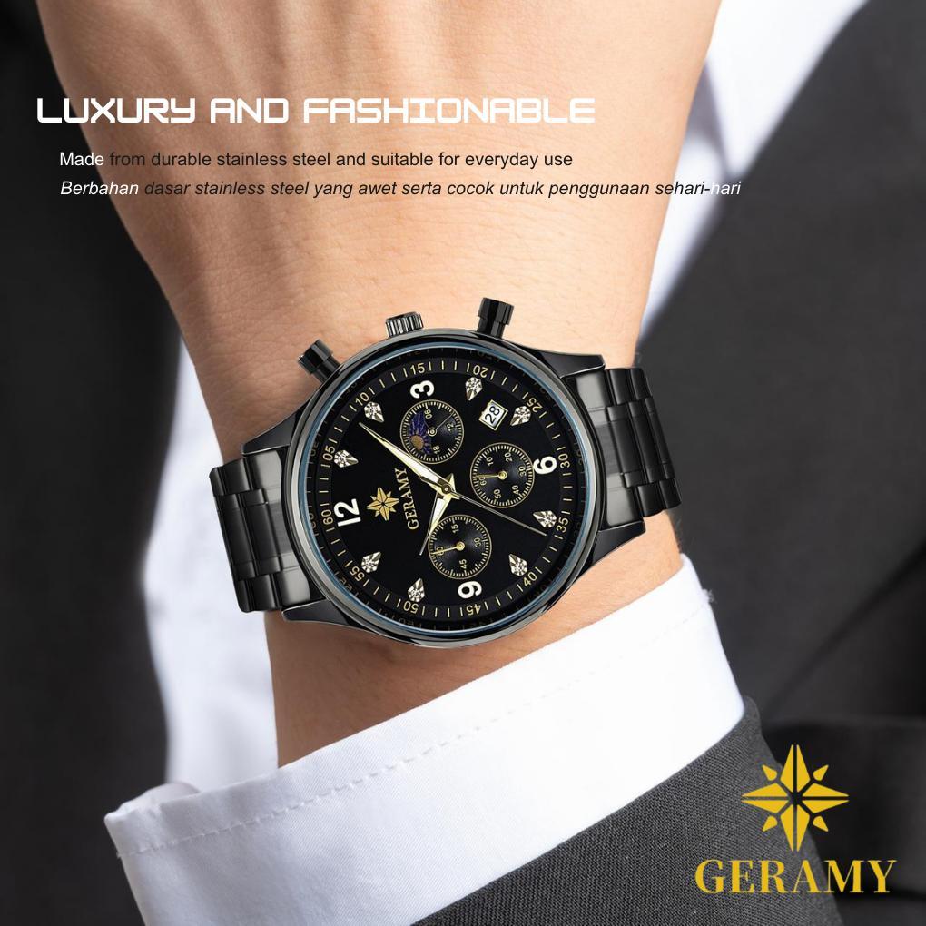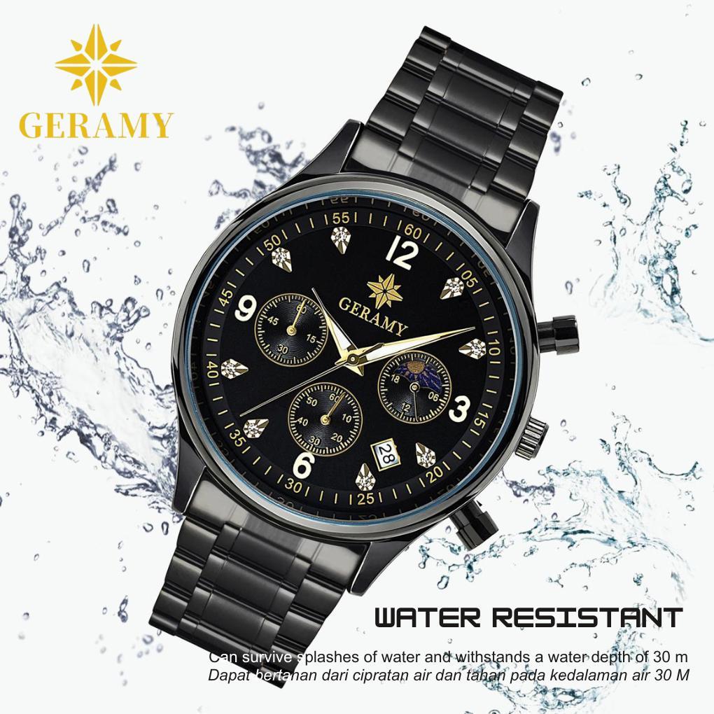 GERAMY S005 Jam Tangan Pria Original Anti Air Stainless Steel Quartz Kalender Multi Fungsi Chronograph