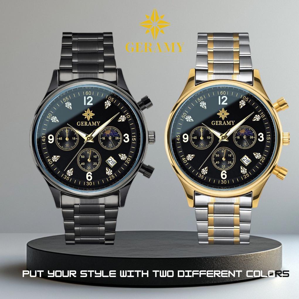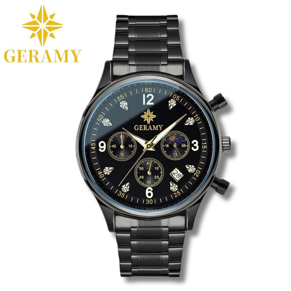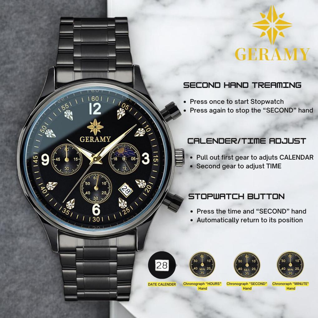 GERAMY S005 Jam Tangan Pria Original Anti Air Stainless Steel Quartz Kalender Multi Fungsi Chronograph