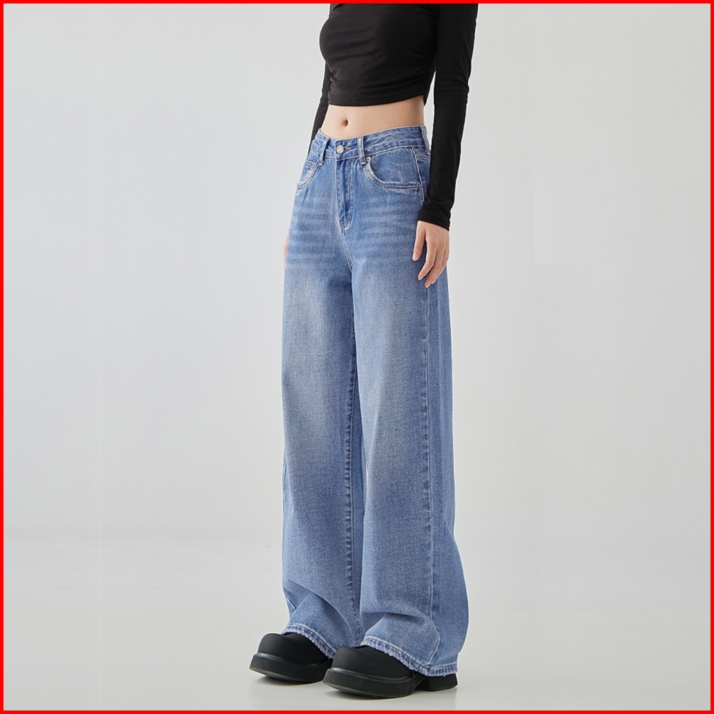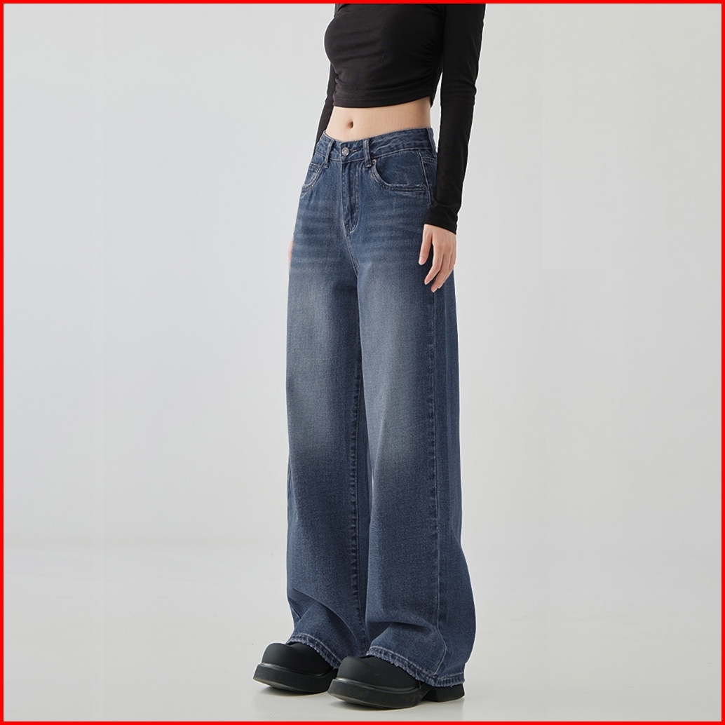 Straight Cut Jeans Terbaru 2025 High Waist Loose Plus Size Celana Jeans Wanita