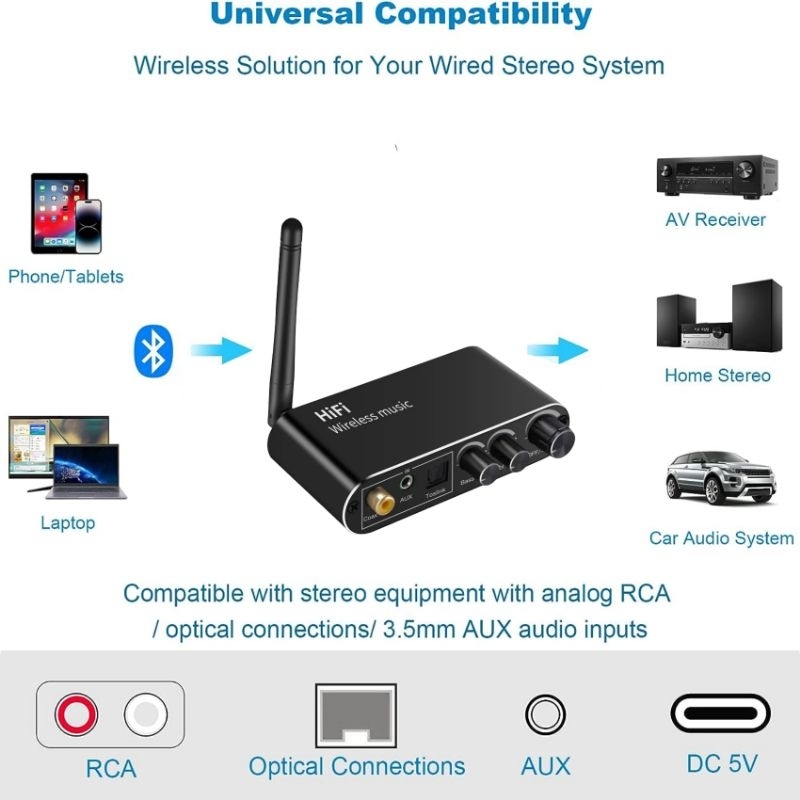 Bluetooth Audio Receiver 5.1 Digital to Analog HD Stereo - T01
