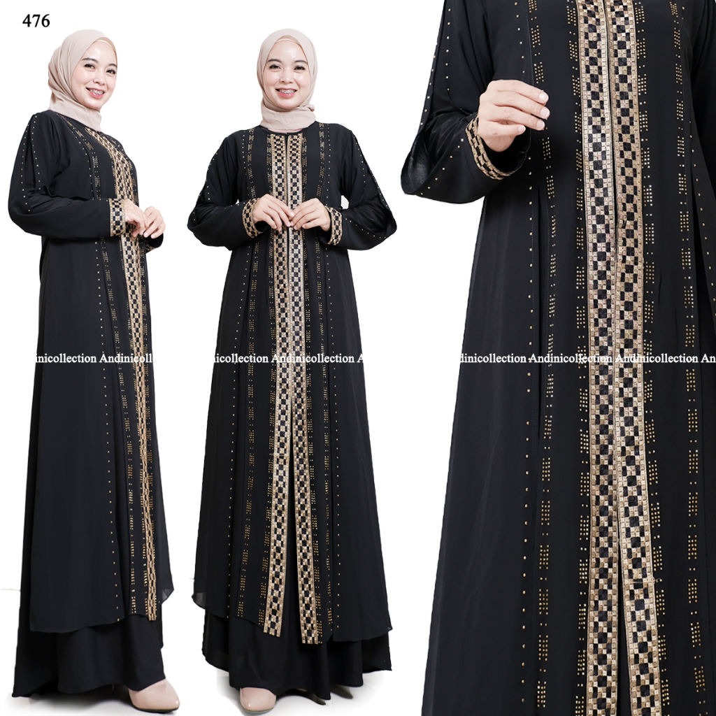 Andinicollection Abaya Turkey 476 Amarta Hitam Putih Dewasa Muslim Bordir dan Payet Mewah