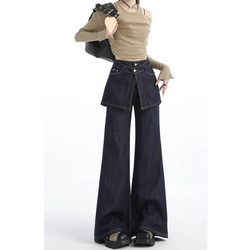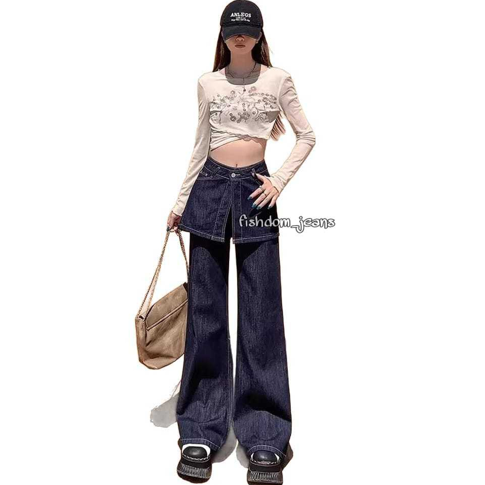 Celana Jeans Flared dengan rok mini Warna Biru Tua Celana Cewek Denim highwaist flare jeans wanita jeans cewek rok celana jeans Cutbry