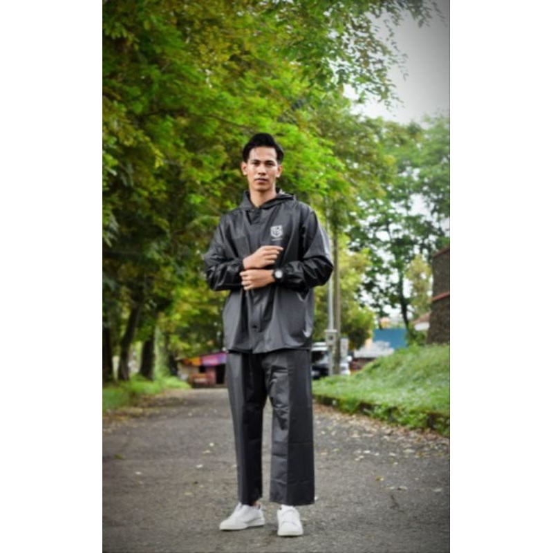 JAS HUJAN RAINCOAT SETELAN ATASAN DAN CELANA PRIA WANITA DEWASA BAHAN ELASTIS ANTI REMBES BY GRAVITY