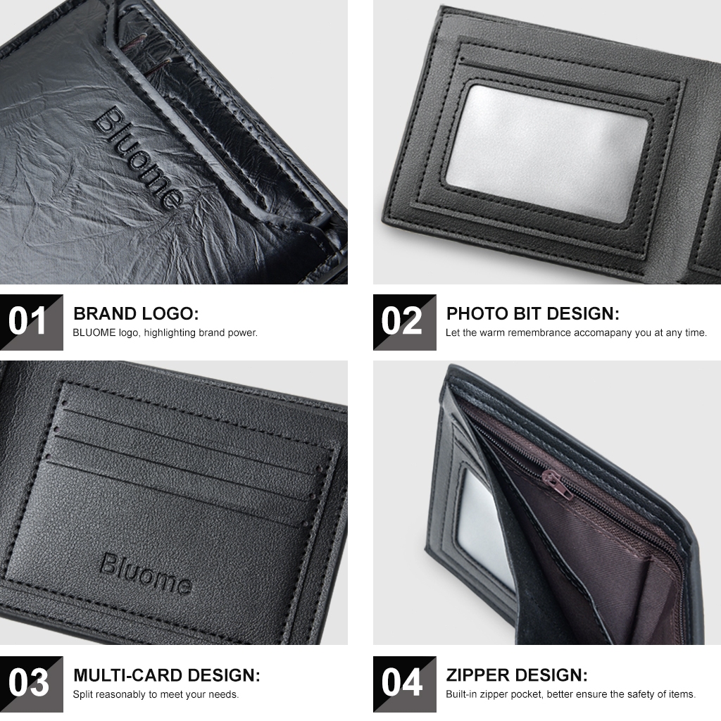 Bluome Dompet Kulit Pria Keren Slot Kartu Dompet Lipat Pendek Cowok Resleting Wallet Card Holder