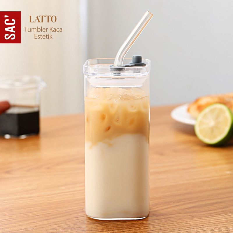 LATTO Gelas Kaca Estetik Minum Kopi Susu Jus Gelas Tumbler Kaca Sedotan Mug Lucu Gelas Estetik Tumbler Minum Gelas Match