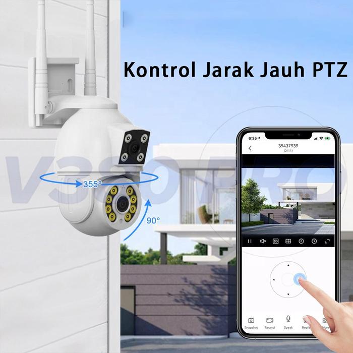 V380 Pro Kamera CCTV 8MP Lensa Ganda Layar Ganda Ai Kamera Pengintai Luar Ruangan Nirkabel Pelacakan - CCTV NO SD Card