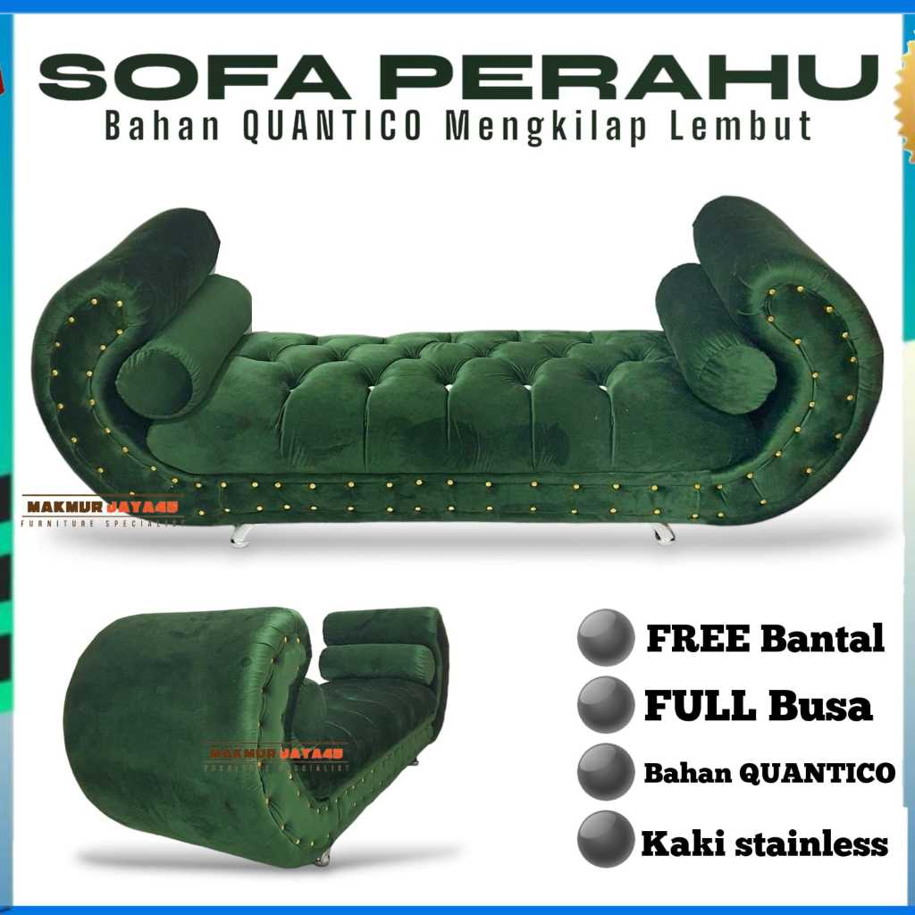 SOFA PERAHU SANDARAN - SOFA BED MINIMALIS / 1 SET SOFA + 2 STOOL bahan quantico mengkilap lembut nyaman BONUS 2 BANTAL G