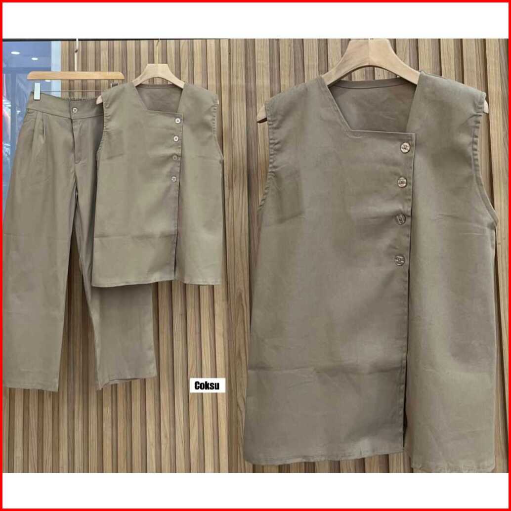 Fisya Fashion Stelan Oneset Vest Wanita Tanpa Inner Bahan Twill Stretch Terbaru Model Kekinian