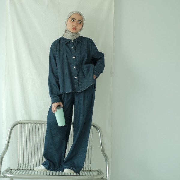 Mono Pants - Atkey x Maryam Nurul | Celana Wanita Soft Denim - Cutting Lurus Modest Fit