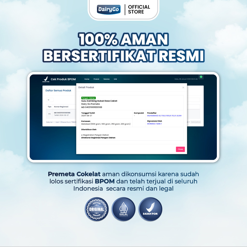 Susu Kambing Etawa Bubuk 1kg Untuk Kesehetan Tulang dan Sendi - Rasa Cokelat - DairyGo - Paket 2x