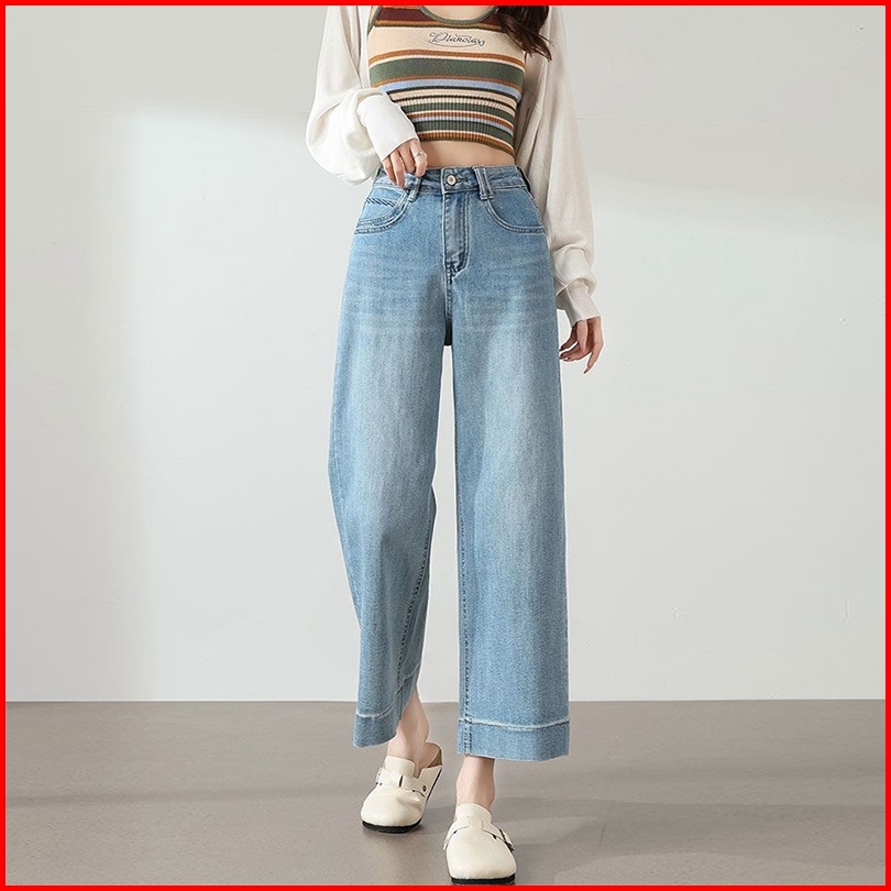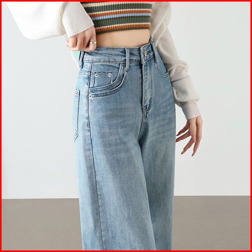 Celana Jeans Highwaist Wanita-celana Jeans Lurus Longgar Pinggang Tinggi Celana High Waist Fashion Korean Style