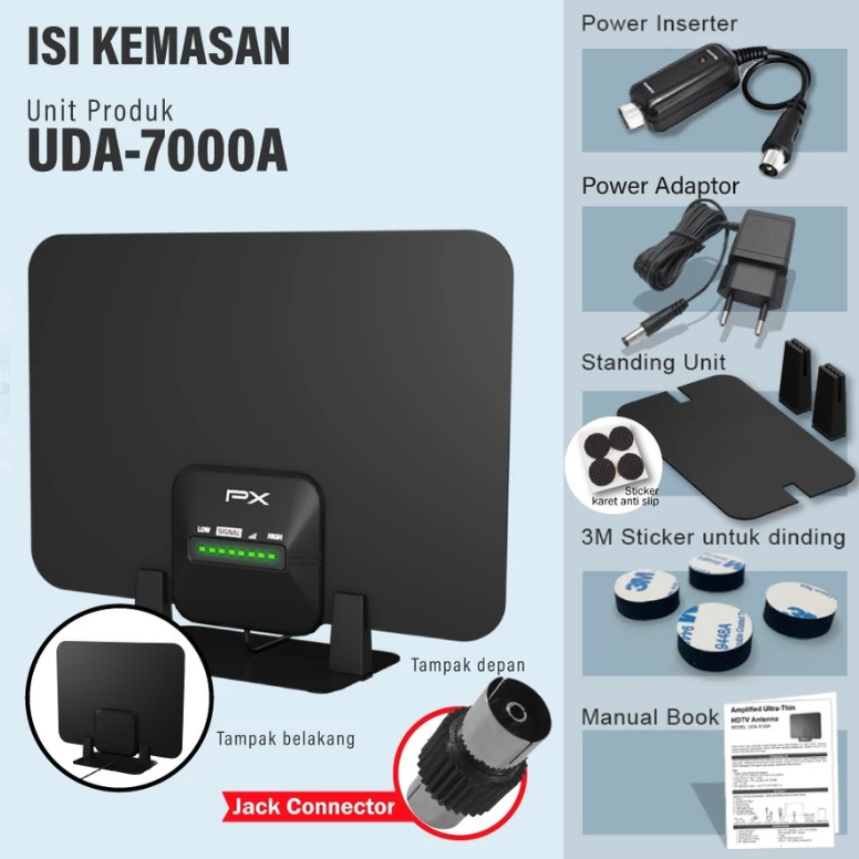 Antena TV Digital Indoor Dinding DVB-T2 + Booster LED PX UDA-7000A