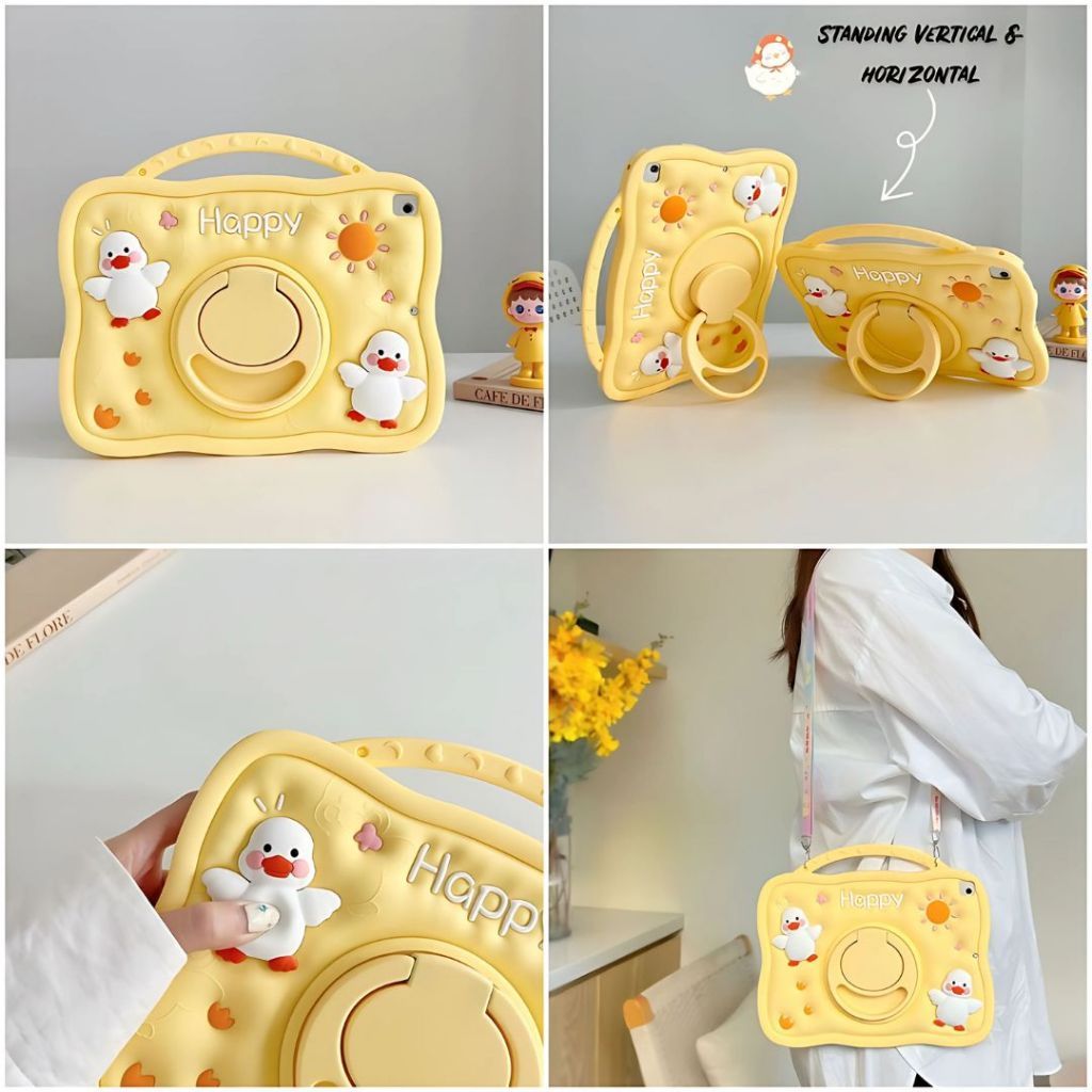 SILIKON CASE IPAD PRO 11 2018-2024 / GEN 11 10 9 8 7 6 5 / AIR 1 2 4 5 6 / MINI 1 2 3 4 5 6 7 CASING KIDS KARAKTER TALI SELEMPANG RING STANDING ROTARY 360 DERAJAT