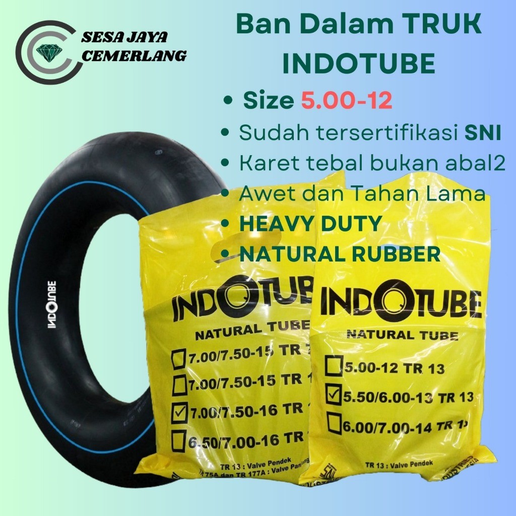 ukuran 5.00-12 Pentil Pendek Ban dalam Mobil truk Indotube Heavy Duty Natural Rubber NR
