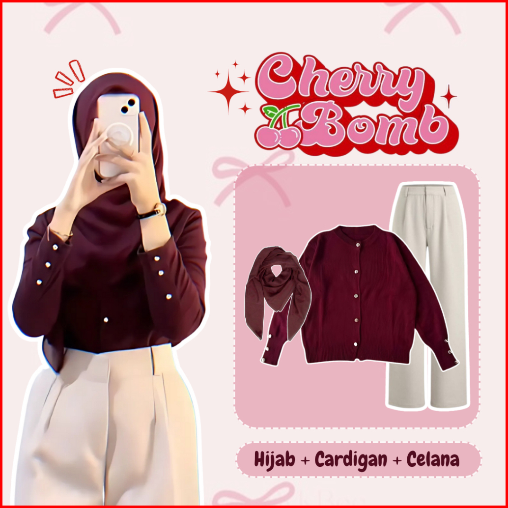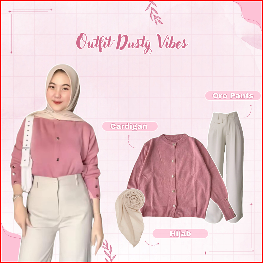 One Set Wanita Setelan Kekinian Cardigan Rajut Celana Knit Hijab Ootd Feminine Girl - Ds082 N