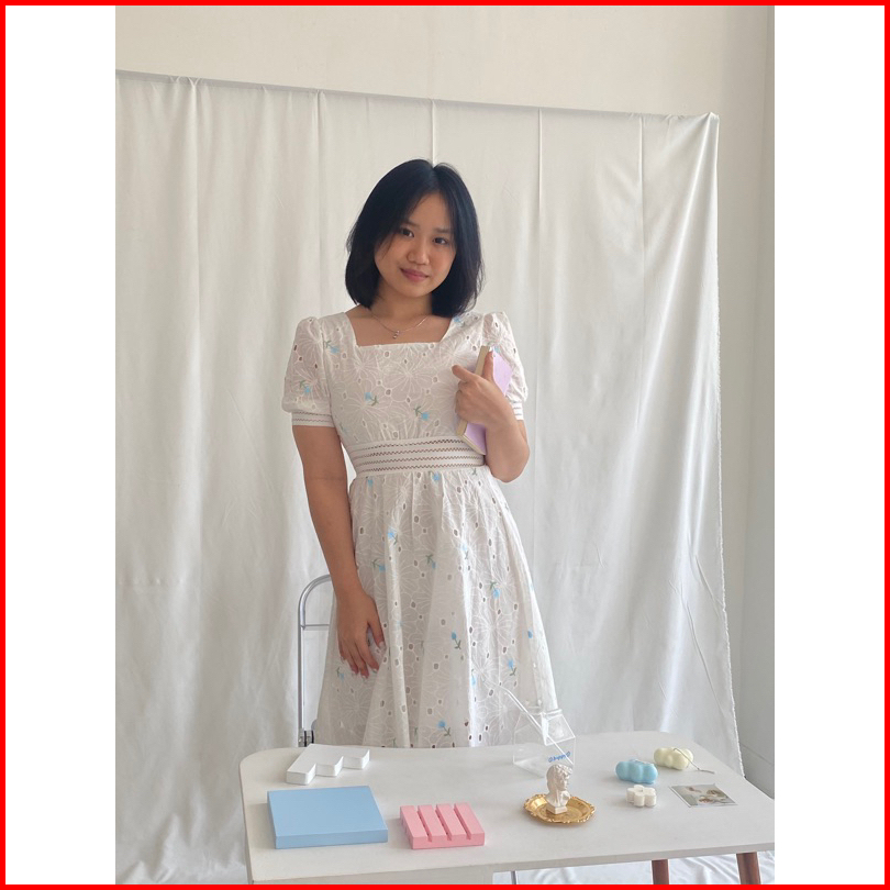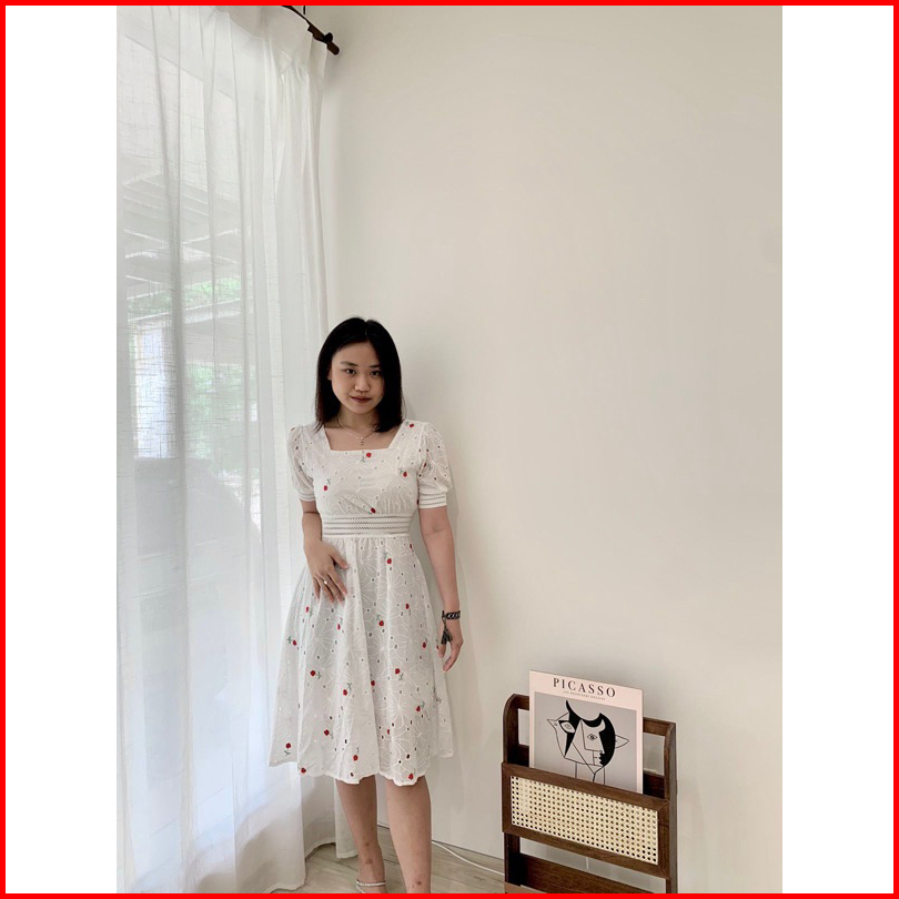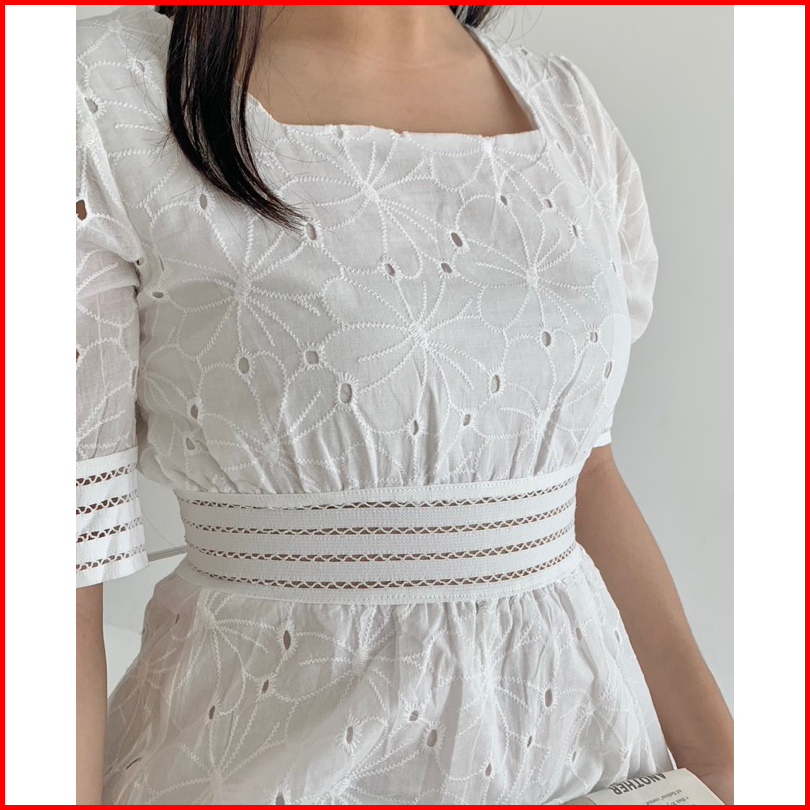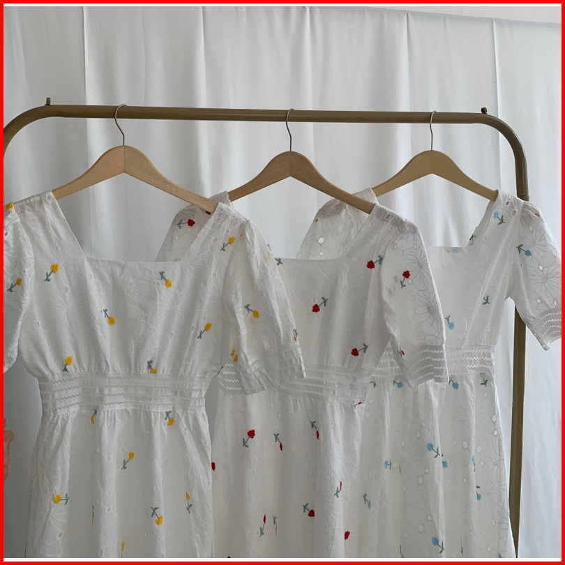 Nuoir Alona Dress L Korean Floral Vintage Midi White Dress
