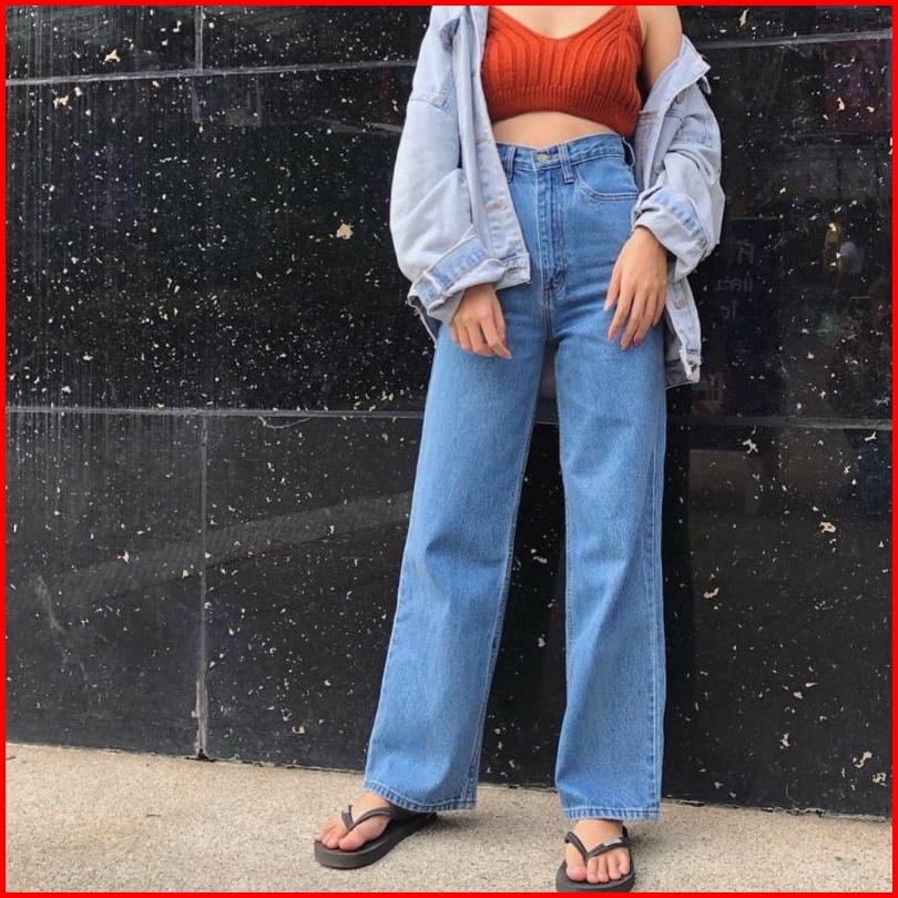 Awsme - Highwaist Loose Jeans Basic Hw Loose Kulot Jeans Celana Panjang Jeans Wanita