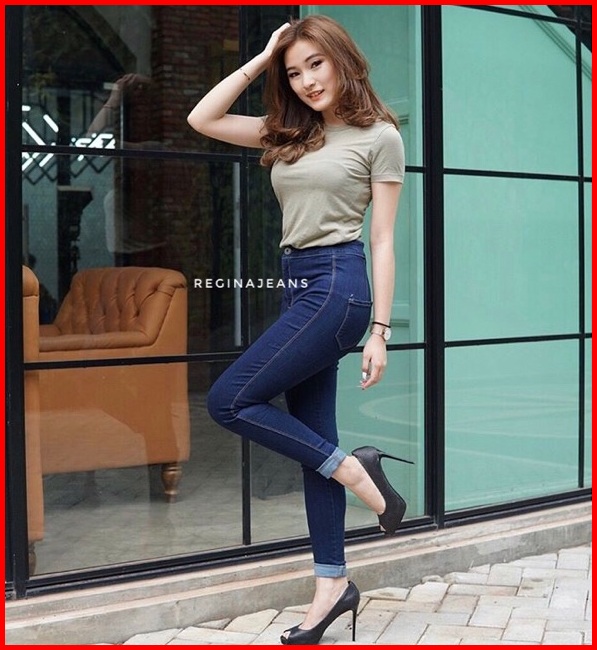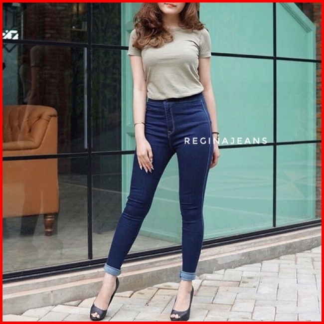 Jsk 1990 Highwaist Jeans Wanita Celana Pinggang Cewek Biru Salur Bahan Jeans Stretch Bigsize Jumbo