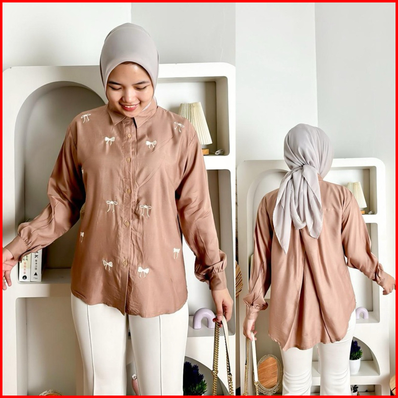 Girlfashionstory Original Borpi Kemeja Rayon Diamond Bordir Pita