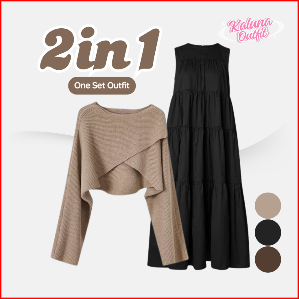 3in1 Set Wanita Kekinian Sweater Dress Pashmina Setelan Hijab Remaja Korean Style Ko2g