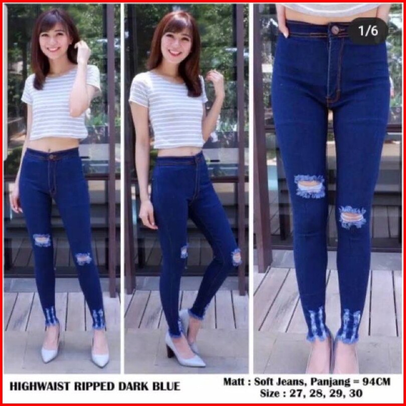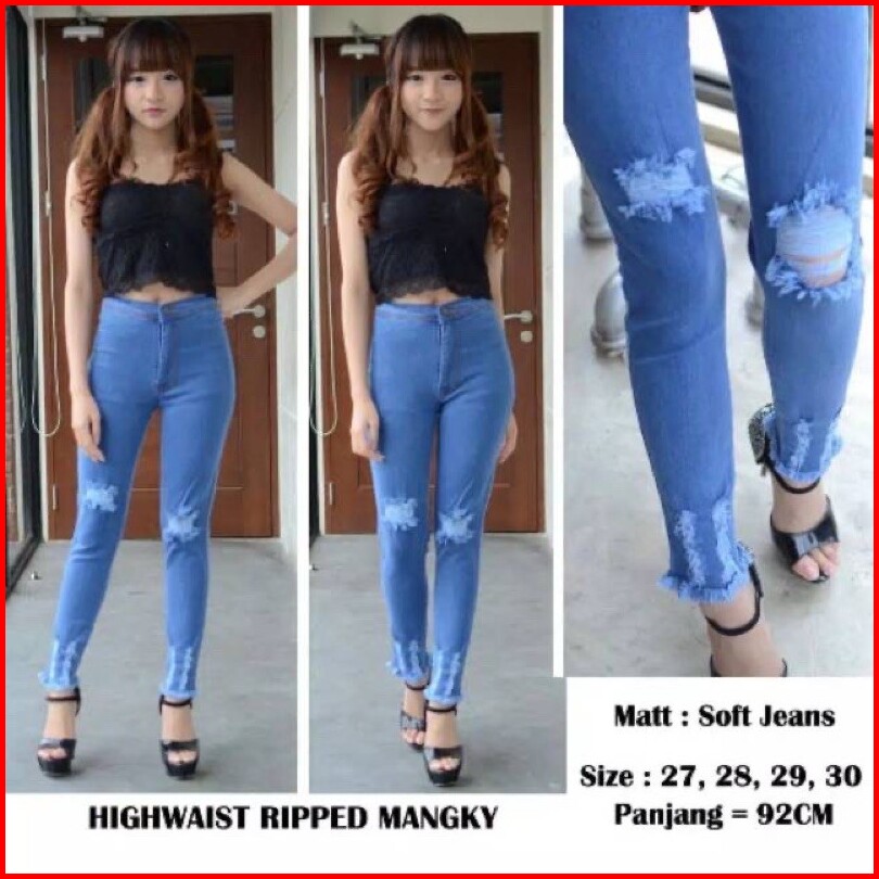 Hw Ripped - Hw Sobek - Celana Jeans Highwaist