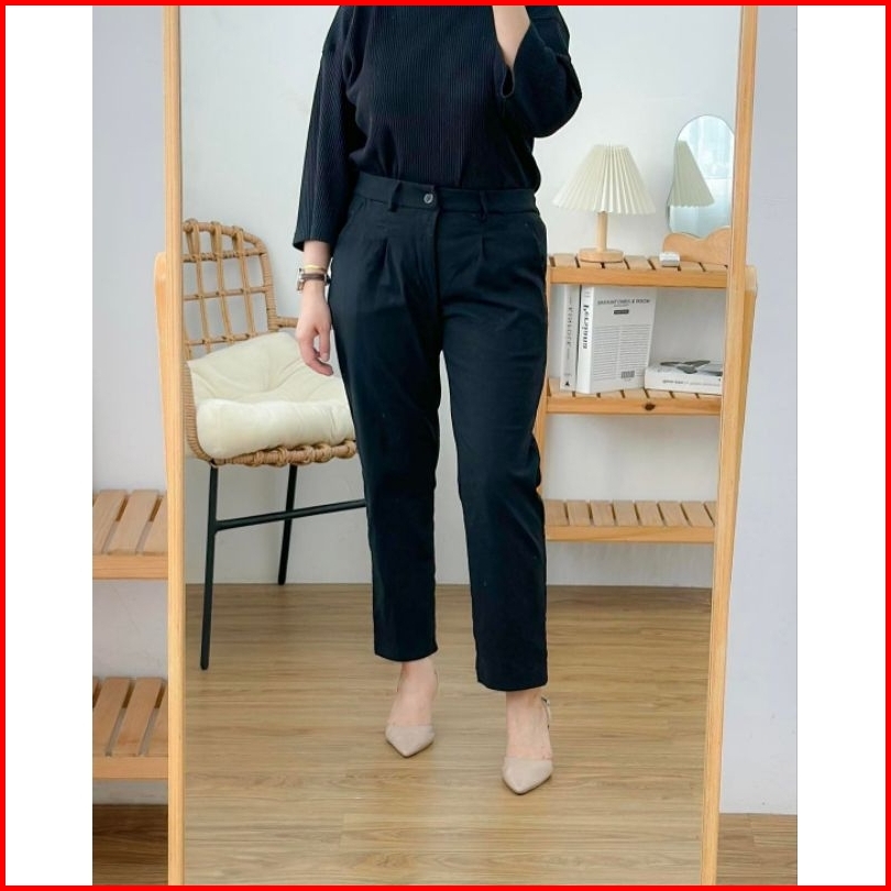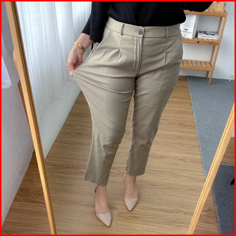 Chino Pants Wanita Pinggang Karet Slim Katun Twill Chino Wanita Chinos Wanita Celana Casual Wanita Baggy Pants