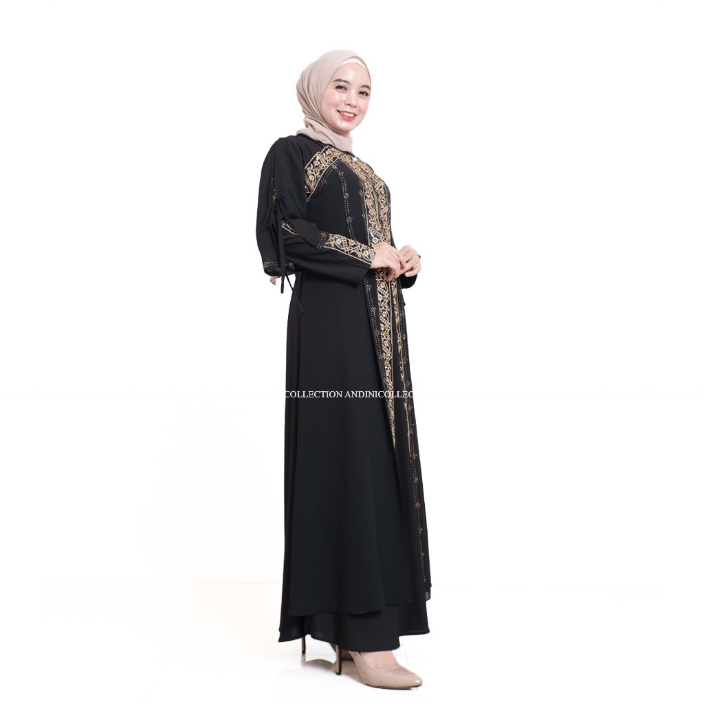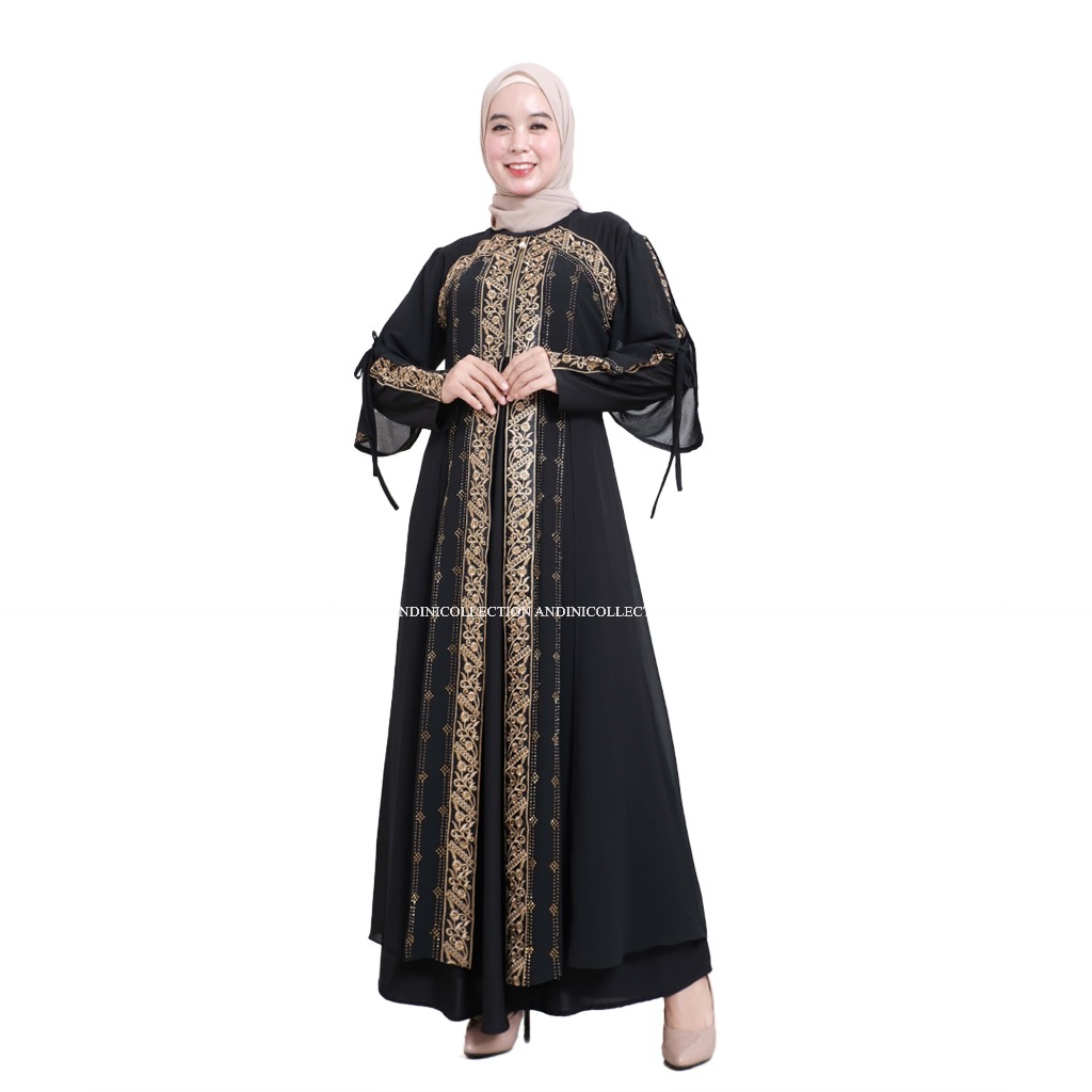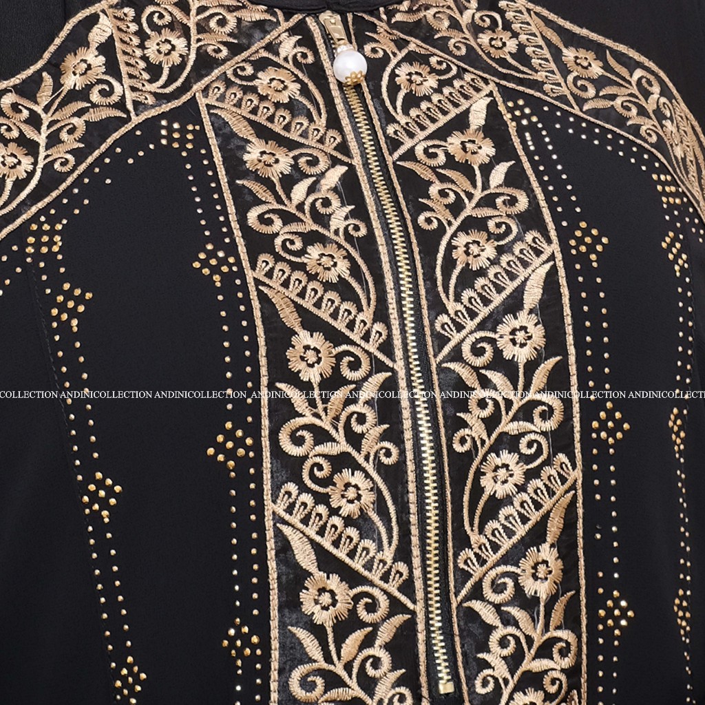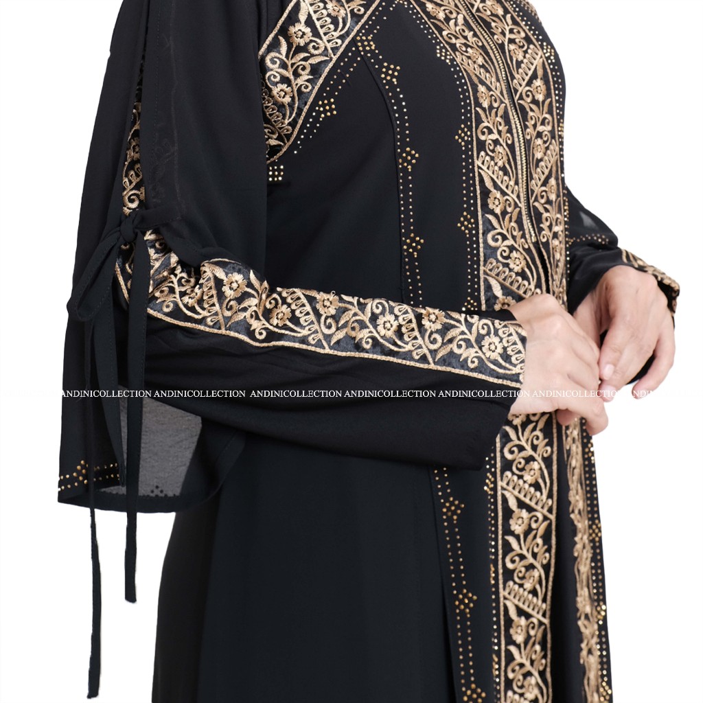 Andinicollection Abaya Turkey 465 Amarta Hitam Putih Dewasa Muslim Bordir dan Payet Mewah