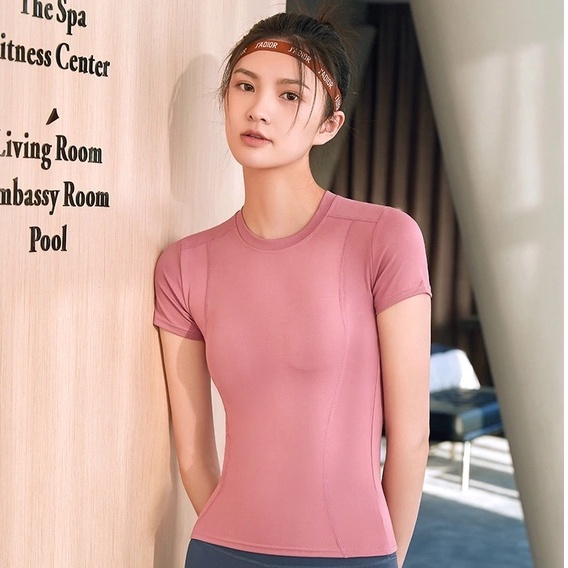 Kaos T-shirt Baju Wanita Lengan Pendek Olahraga Yoga Gym Fitness Aerobik Zumba