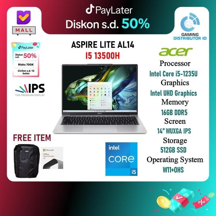 ACER ASPIRE LITE AL14 I5 13500H 16GB 512GB W11+OHS 14.0WUXGA IPS - LAPTOP, 8G | 512SSD
