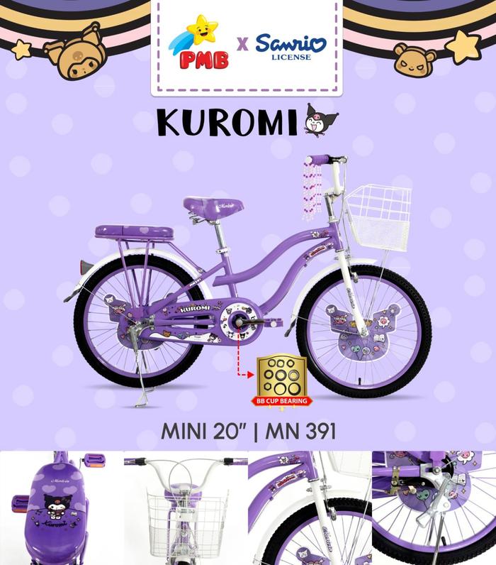 SEPEDA ANAK PEREMPUAN 20 INCH PMB SANRIO KUROMI MN 361 KERANJANG DAN BONCENGAN - MN361 PURPLE, 20 INCH (7-12 TH)