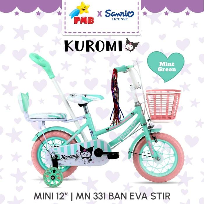 SEPEDA ANAK PEREMPUAN 12 INCH PMB SANRIO KUROMI MN331 BAN EVA STIR - MN331 STIR GREEN, 12 INCH (2-4TH)