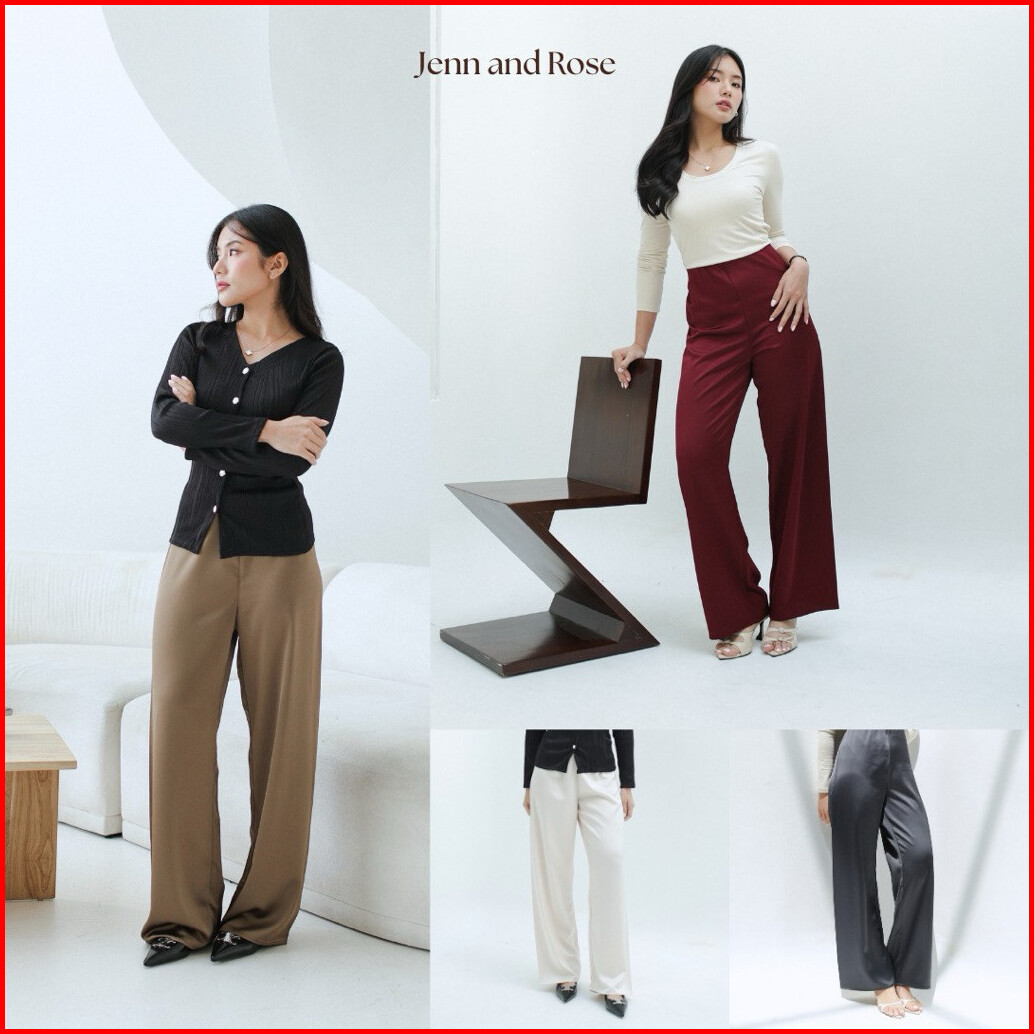 Jenn Rose Pixie Satin Pants Celana Satin Pixie Premium Celana Satin Wanita Pixie Tailored Satin Straight Pants