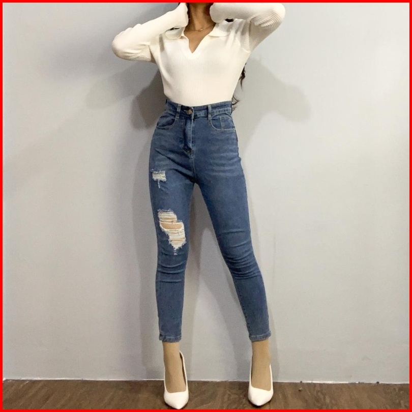 Luxe.dlabel - E47 Jeans Celana Panjang Highwaist Wanita Jeans Premium Jeans Wanita Polos Ripped Jeans High Waist Jeans W